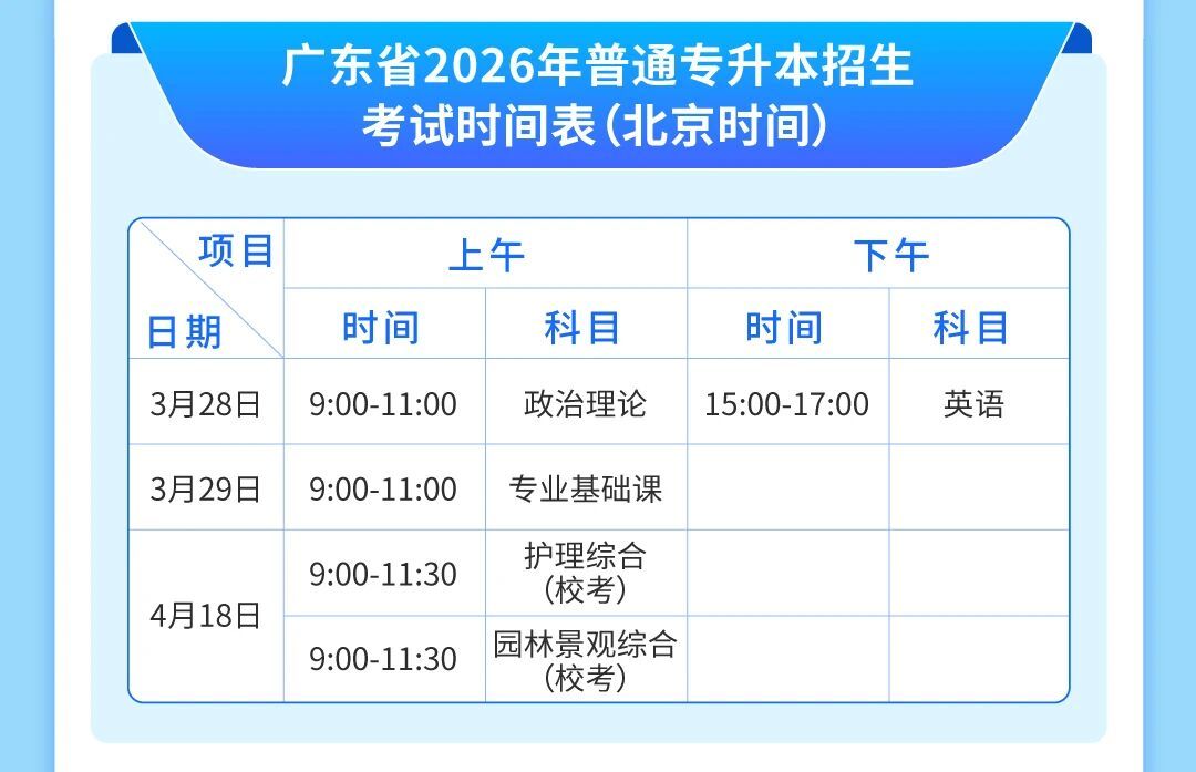 普通专升本招生考试时间安排如下:我校省统考科目定于2026年3月28日(星期六)至29日(星期日)两天,校考科目初定于2026年4月18日(星期六)进行(如有变化,另行通知)。具体安排见下表: