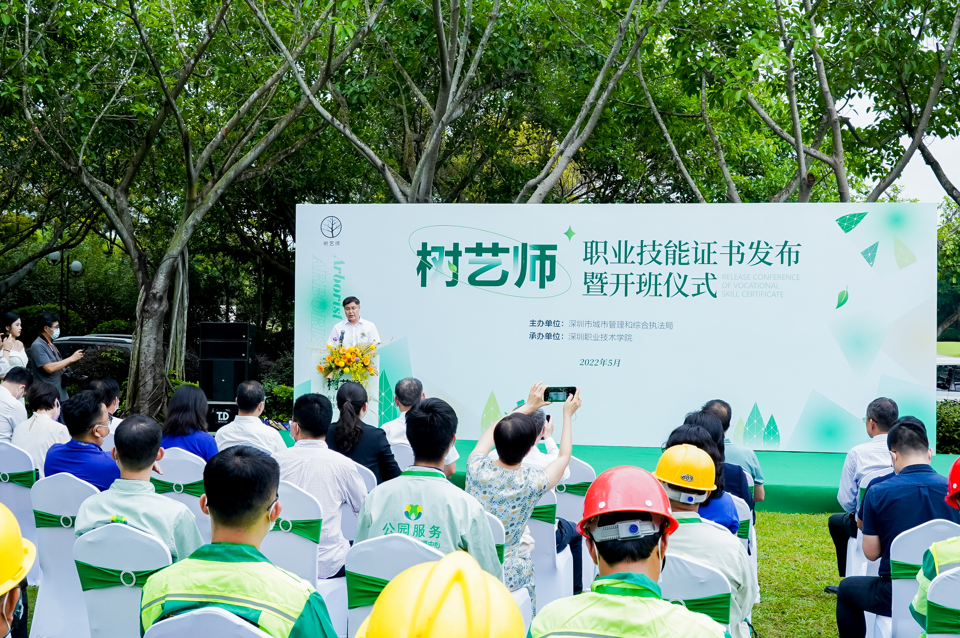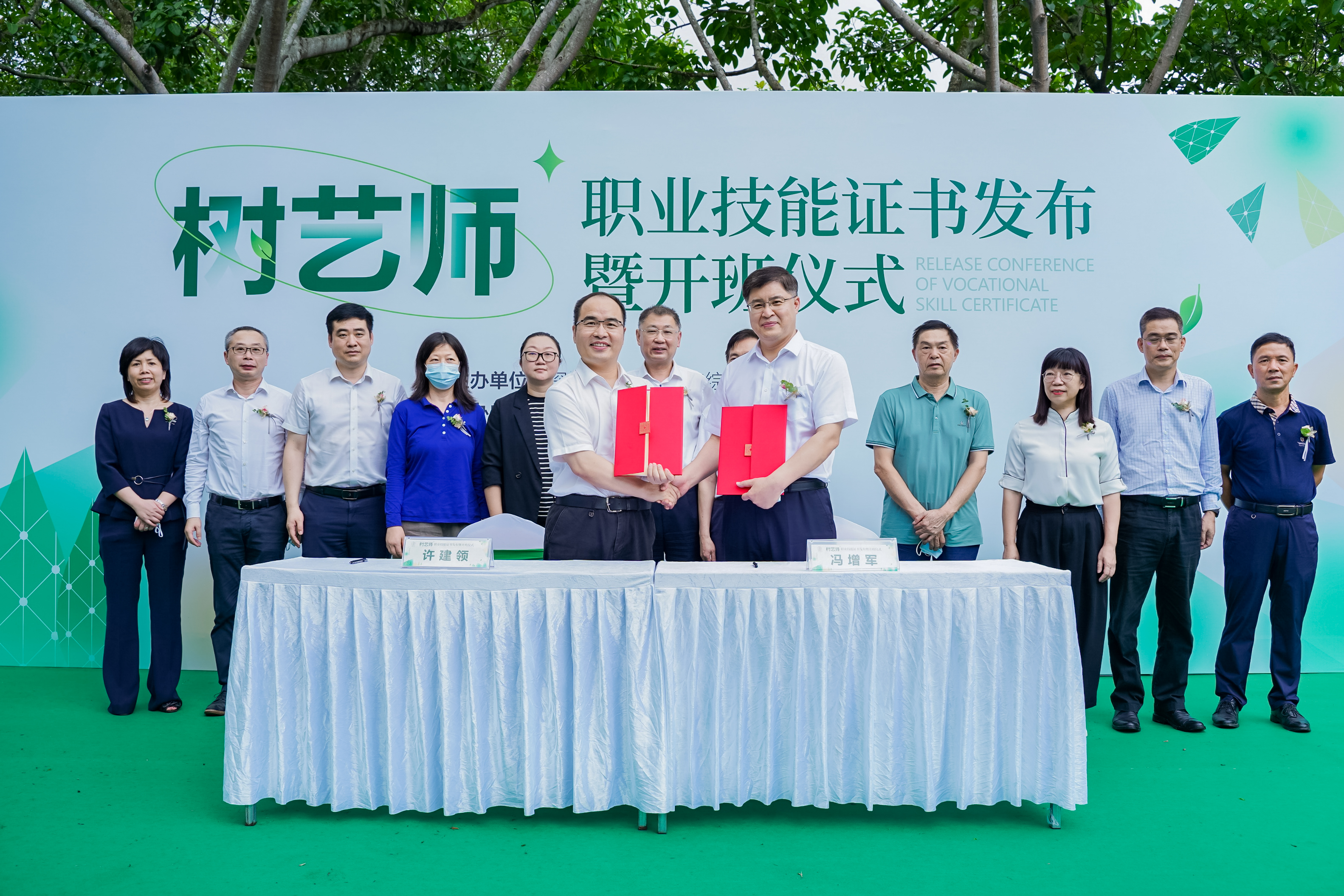 5月26日,由深圳市城市管理和综合执法局主导,我校牵头联合深圳市园林行业企业专家及一线技术骨干人员一同开发的“树艺师”职业技能证书在莲花山正式发布。市教育局、市城管局、深圳职业技术学院、市风景园林协会、深圳市特区建工集团有限公司、深圳农科集团、深圳市仙湖植物园等单位的有关领导以及我校负责树艺师开发的团队和标准联合开发单位的专家共同见证了这一重要时刻。